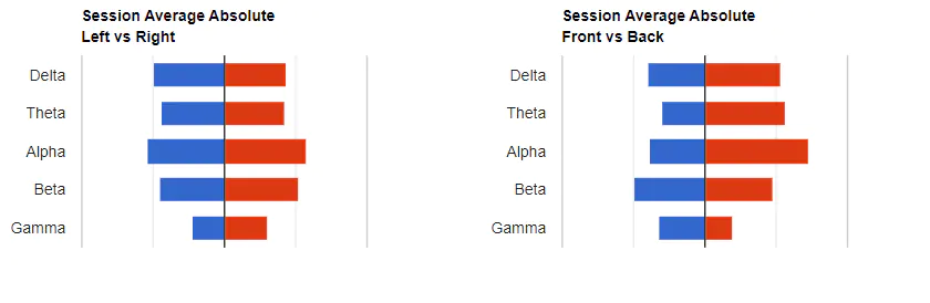 - The most boring aspects are happening in the back sensors, with levels across all brainwaves maintaining relatively consistent levels across the entire session, with some minor exceptions.